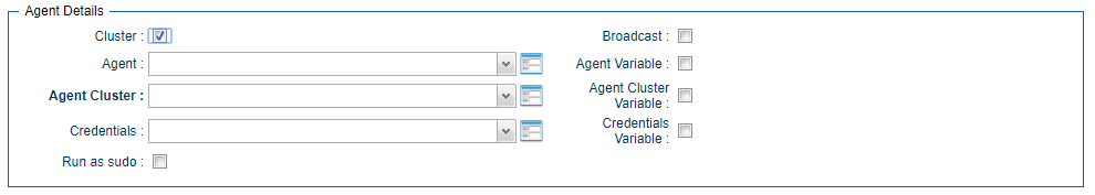 B-10812 | Task Agent & Agent Cluster User Interface Enhancements | The definition of Agent, Agent Cluster, Agent Cluster Broadcast, Agent Credential, and related options for all tasks has been moved to it's own section in the task definition form.
