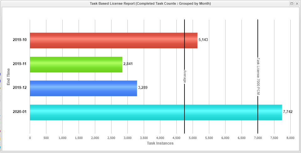 B-11293 | Reports : Bar Charts - Show Threshold Line Option | For Bar Chart report types you can now optionally show a threshold line in the chart. In the Report Definition form under Chart Options, simply check the Show Threshold option, specify the Threshold Integer Value and optionally specify the average line color, and Label.