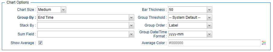 B-11292 | Reports : Bar Charts - Show Average Line Option | For Bar Chart report types you can now optionally show an average line in the chart. In the Report Definition form under Chart Options, simply check the Show Average option and optionally specify the average line color.