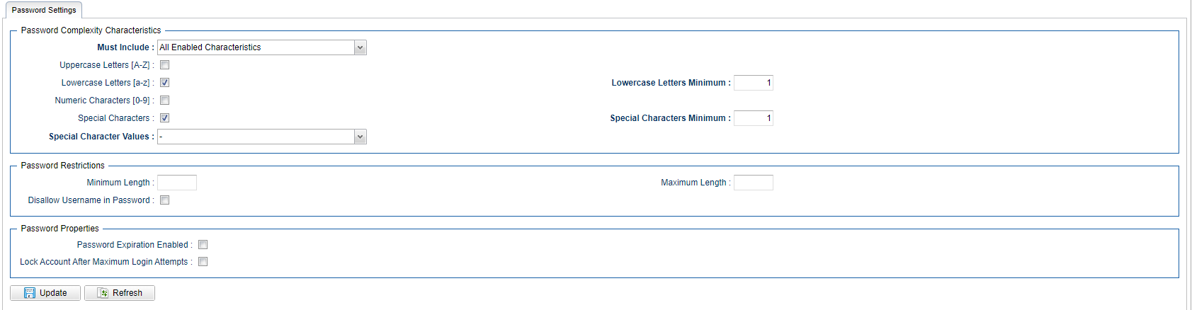 E-01281 | Security Requirements for Local Logins and Passwords | A new Administration Configuration section for Password Settings has been added to a) group local password related properties and b) provide new options to specify requirements for locally defined passwords:
