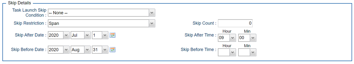 B-09930 | Skip Restrictions for Triggers | UC 6.9.0.0 introduces a new trigger form section Skip Details. This section contains the Task Launch Skip Conditions and Skip Count which were previously located in the Status section and a new Skip Restriction feature.