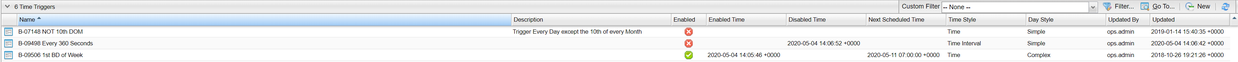 B-11479 | Add Time Stamp for Enabled At or Disabled At for Triggers | The time that a Trigger was Enabled At or Disabled At is recorded and displayed for all triggers.
