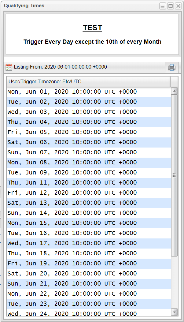 When listing qualifying times in this case you will clearly see when and why the trigger is skipped.
