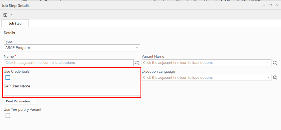 B-20727* | SAP User Name Restrictions for SAP Enhanced View. | A new Credential type, SAP Credentials, has been introduced. An SAP type Credential can be specified as the task-level SAP Credentials for an SAP Task. You can also use an SAP type Credential when adding a Job Step. A new field, Use Credentials, has been added to the Job Step Details form. This checkbox toggles between using SAP User Name or SAP User Credentials to specify the