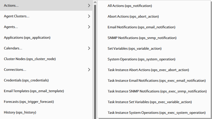 B-21523 | Split task and task instance action records into separate table hierarchies. | Previously, the Controller stored Actions (e.g. Abort Actions, Email Notifications, etc.) for tasks and task instances in the same table hierarchy. For customers with a large number of Actions, this could cause performance issues. Now, task instance actions are stored in separate, flattened tables, improving query performance and optimizing Data Backup/Purge purge operations. This change is primarily a backend improvement. You will not notice many changes in the UI, except when generating Reports, you will now see separate tables for Task Actions and Task Instance Actions: