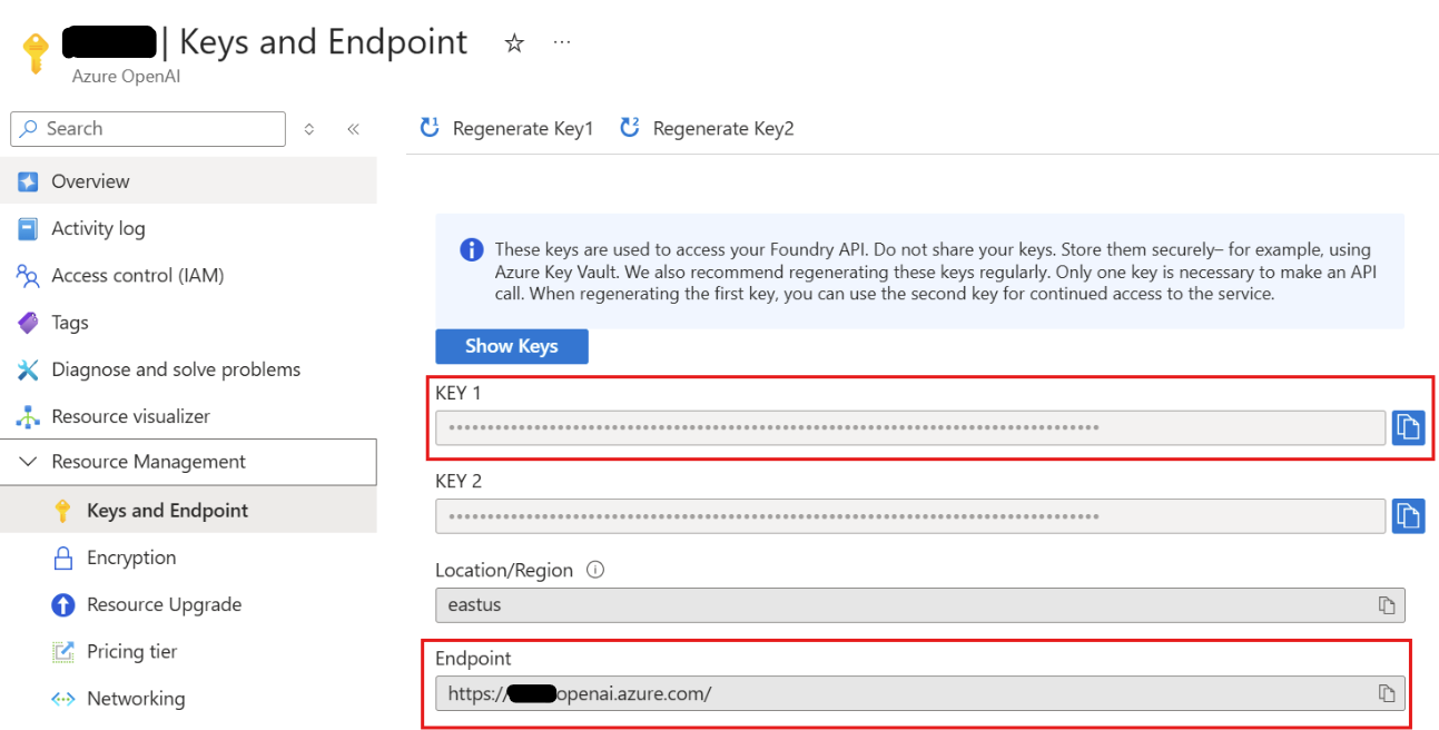text-embedding-3-small- same process. - Note your Endpoint URL and API Key, and the Deployment Name of each model.