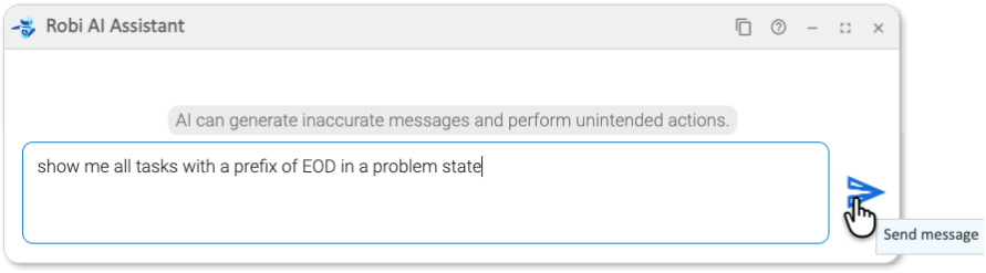 Robi AI knows what "problem state" means, so it finds all task instances that were not successful.