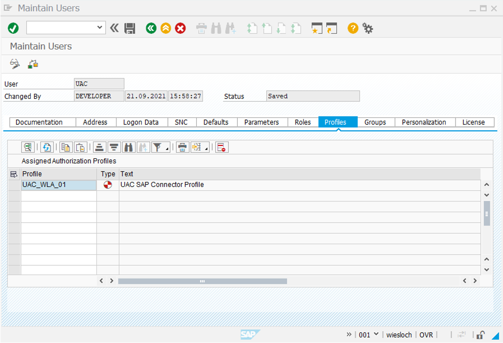 Universal AgentUniversal Connector for SAPUniversal Connector for SAP AuthorizationsCheck in SU01 Maintain Users the ConfigurationCheck in SU01 Maintain Users the ConfigurationRole Profile