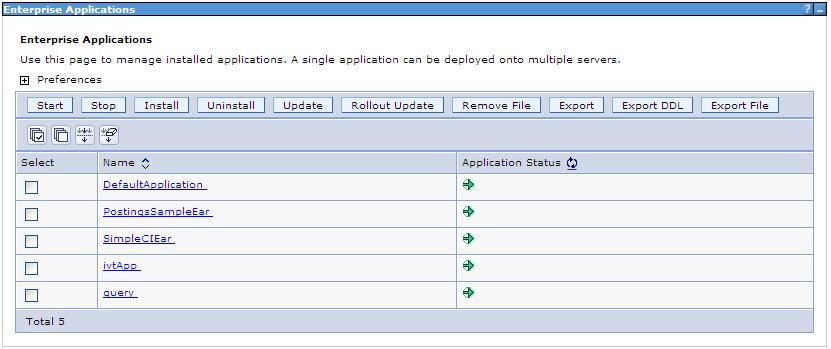 Go to Applications / Install New Applications in the Integrated Solutions Console menu. Keep in mind that the PostingsSampleEar application requires the database to be set up before you install the application.