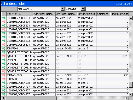 The Jobs table displays information on jobs for an Agent selected in the Data Table (see Displaying a Jobs Table).