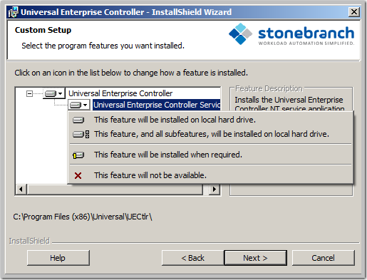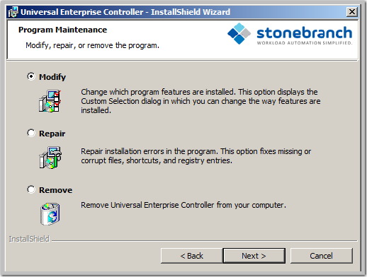 Modifying a Universal Enterprise Controller Installation via the Windows Installer Graphical Interface