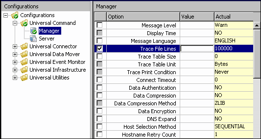 Step 2 | Select a configuration from the Configuration tree. The Configuration Options table then lists all options, and their current values, for that configuration. |