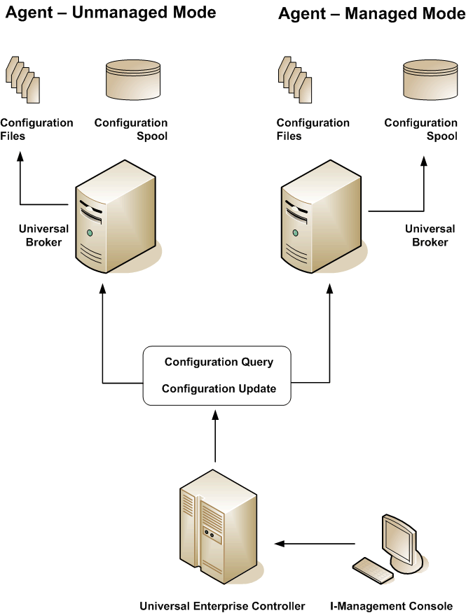 Universal Agent components can be configured remotely by Universal Enterprise Controller via the I-Management Console client application, and can be "locked down" so that they only can be remotely configured.