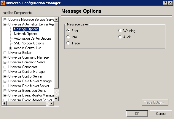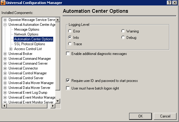 Universal Automation Center Agent: Automation Center Options