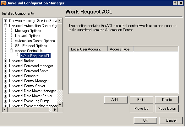 Universal Automation Center Agent: Access Control List: Work Request ACL