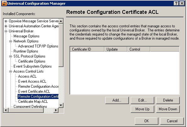Universal Broker: Access Control Lists - Remote Configuration Certificate ACL