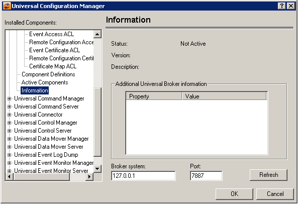 Additional Universal Broker Information | Displays properties of Universal Broker. |