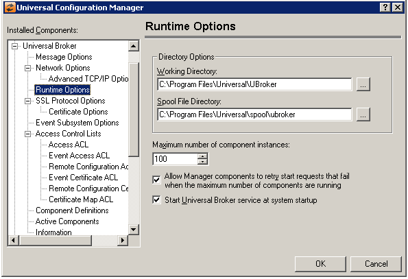 Directory Options | Working Directory Spool File Directory Start Universal Broker Service at system startup |