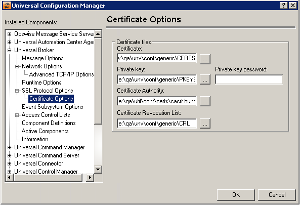 Universal Broker: SSL/TLS Protocol Options - Certificate Options
