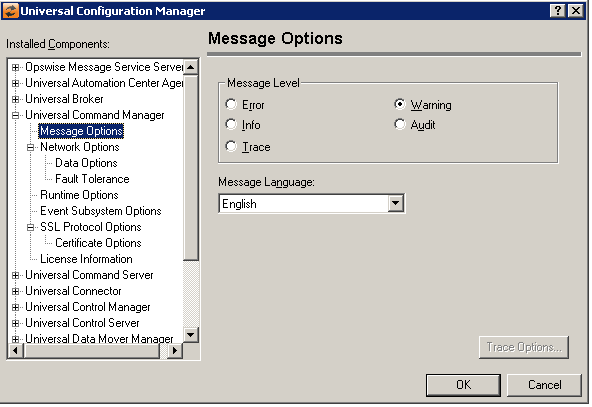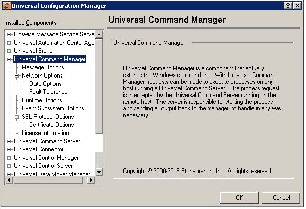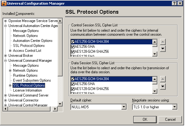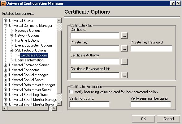 Universal Command Manager: SSL Protocol Options - Certificate Options