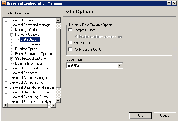 Network Data Transfer Options | Compress Data Enable maximum compression Encrypt Data Verify Data Integrity |