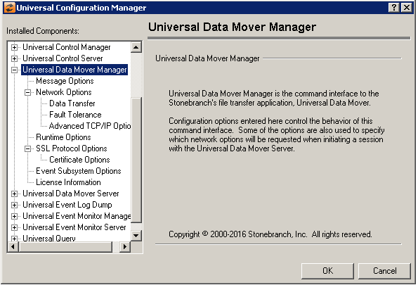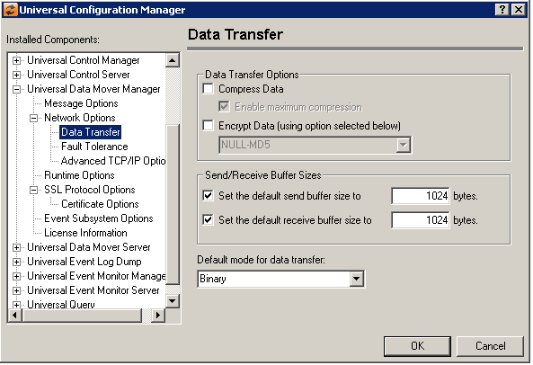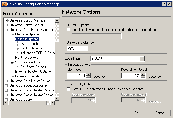 Universal Data Mover Manager: Network Options - Advanced TCP/IP Options