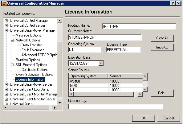 Import Button | Select this button to browse for and load the Universal Command Manager license file, which will automatically import the license information. |