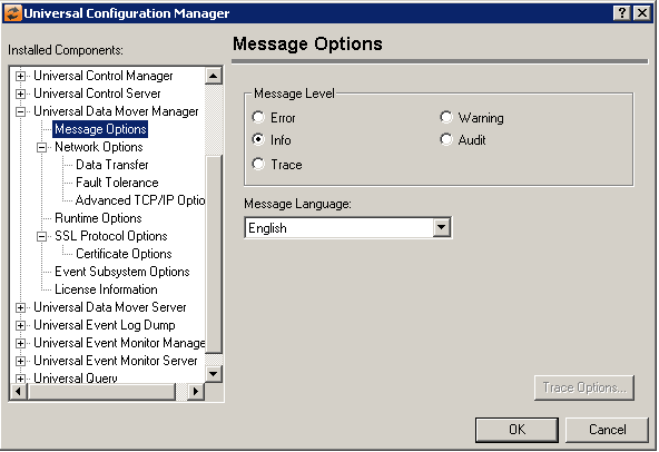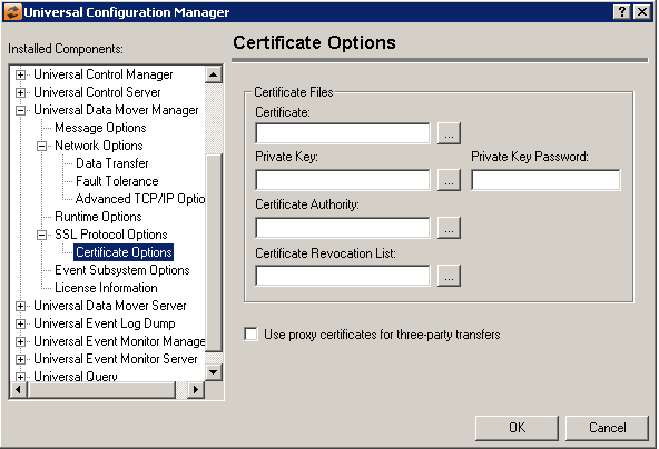 Universal Data Mover Manager: SSL/TLS Protocol Options - Certificate Options