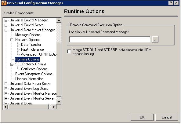 Merge STDOUT and STDERR data streams into UDM transaction log | Select this option to cause all information written to the STDOUT and STDERR data streams to be merged into the UDM transaction log. |