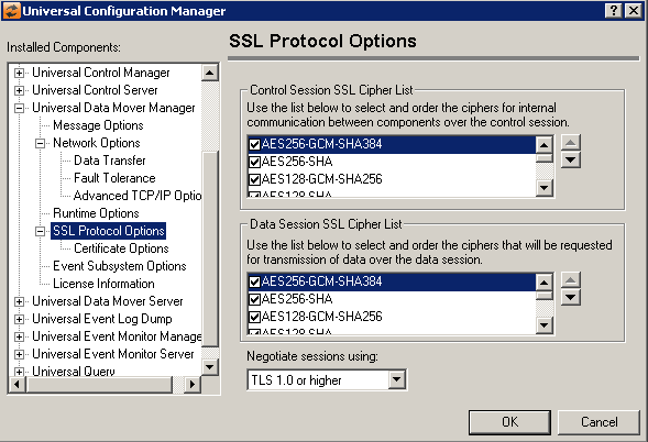 Universal Data Mover Manager: SSL/TLS Protocol Options