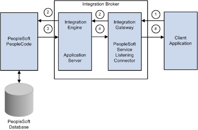 You indicate to Universal Connector for PeopleSoft which PeopleSoft system to connect to and what background processing tasks to perform. Universal Connector for PeopleSoft connects to the PeopleSoft system and processes your request.