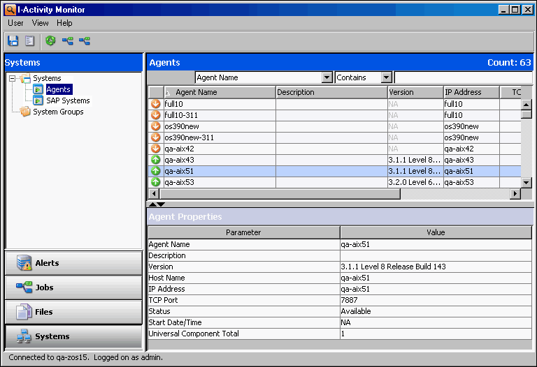 • Jobs table displays a list of all current jobs for an Agent selected in the Data table (see Jobs Table).