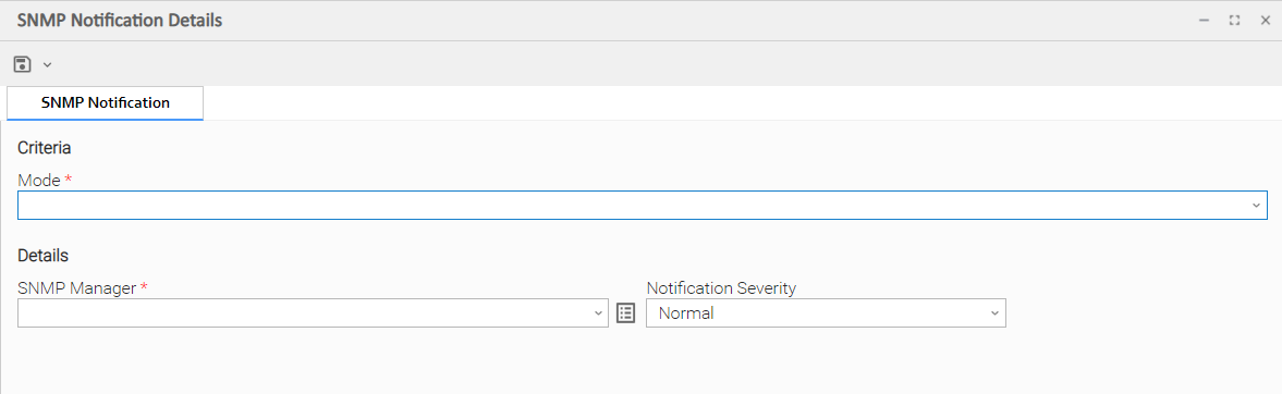 SNMP Manager | The SNMP Manager that will receive the SNMP notification. Enter the name of an existing SNMP Manager, select an existing SNMP Manager from the drop-down list, or clear the SNMP Manager field and click the Details icon to create a new SNMP Manager. |