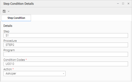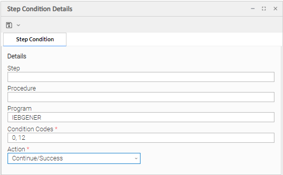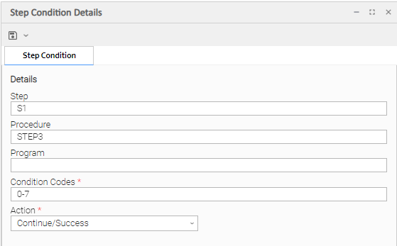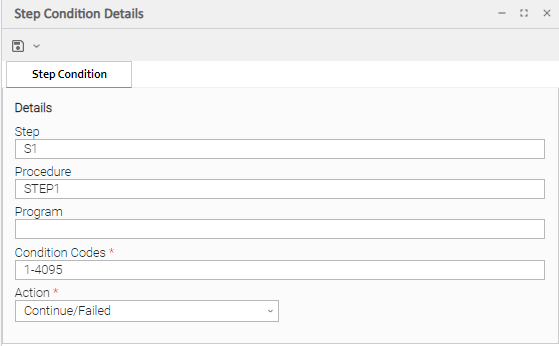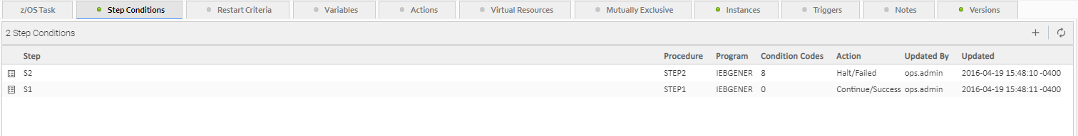In addition to determining the z/OS Task status, Step Conditions provide a means to control the execution of job steps without any changes to the batch job JCL. A Step Condition definition can specify that job execution is halted, continued, or determined by a console operator. For example, if a multi-step job has a step that ends with a condition code of 8, you could include a Step Condition check to decide whether or not to run the following steps.