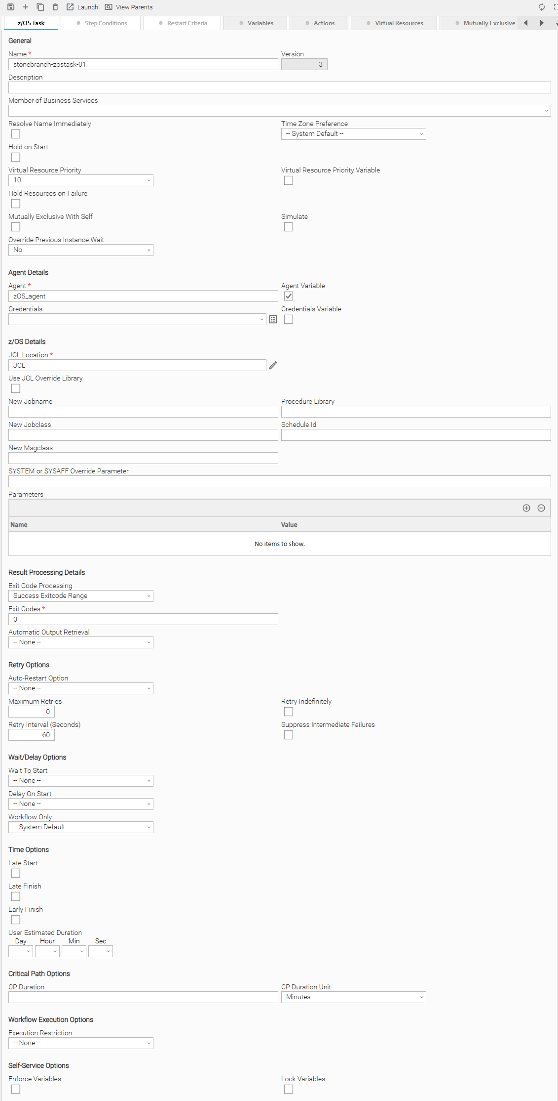 Step 2 | Select the task for which you want to create one or more Step Conditions. The z/OS Task Details for that task displays.