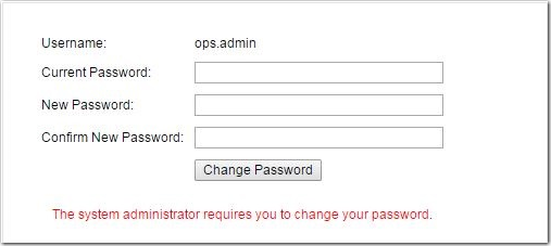 Log in with user ops.admin and no password. A Change Password dialog displays.