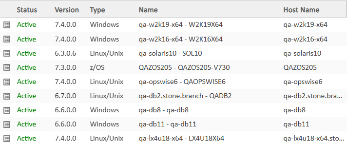 From the Agents and Connections navigation pane, select Agents > All Agents or Agents > <type of Agent>. You will see a list similar to the following example. Make sure the Status of the Agent is Active.