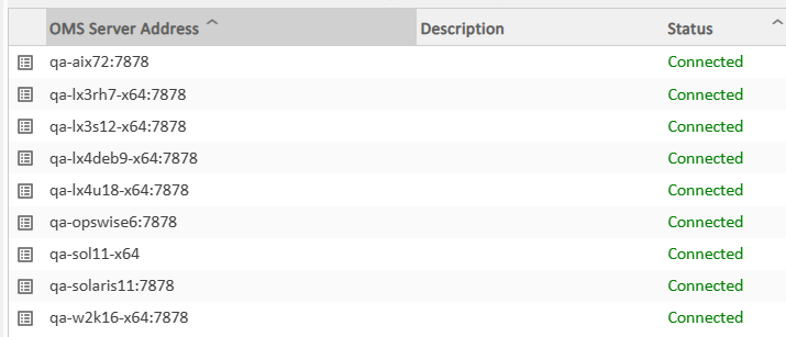 From the Agents and Connections navigation pane, select System > OMS Servers. You will see a list similar to the following example. Make sure the Status of the OMS Servers are Connected.