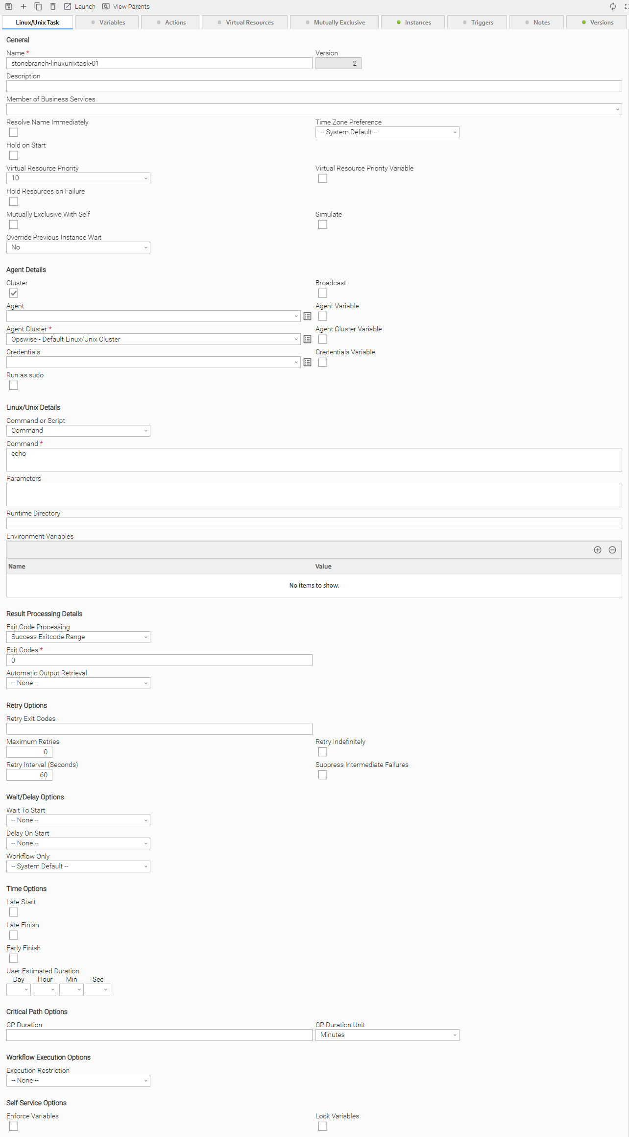 The following Linux/Unix Task Details is for an existing Linux/Unix task.