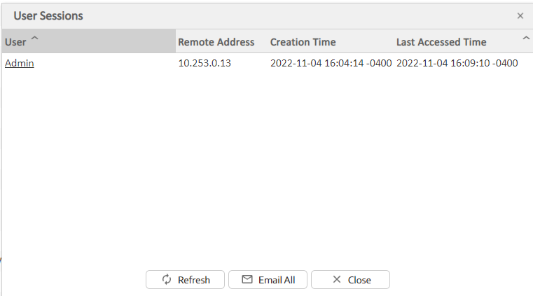 Step 1 | Click the Email All button on the User Sessions list. An Email pop-up dialog displays. |