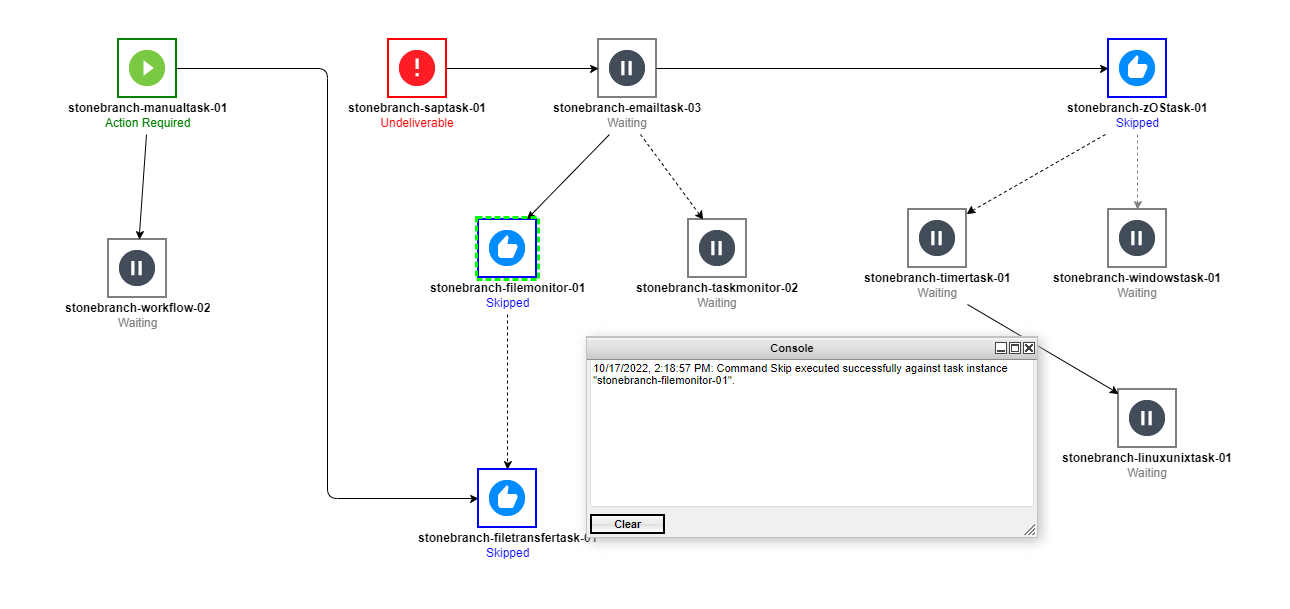 The Critical Path View is dynamic; if task instances are Skipped in a Workflow, and they longer are part of the Critical Path, they no longer display on the Workflow Monitor while it is in Critical Path View.