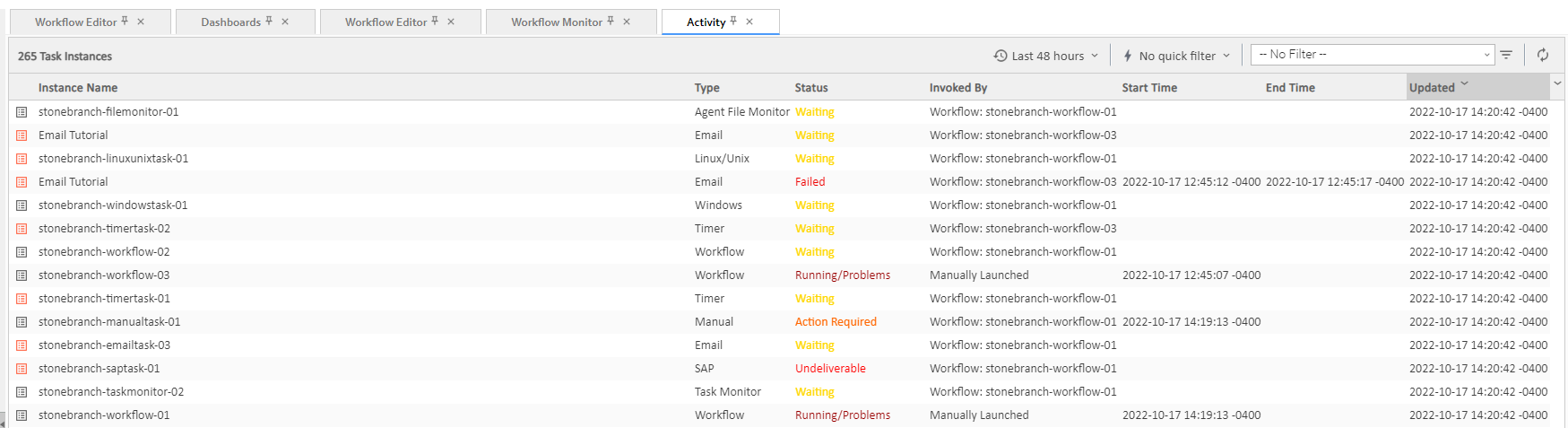 Step 1 | From the Automation Center navigation pane, select Task Instances > Activity. |