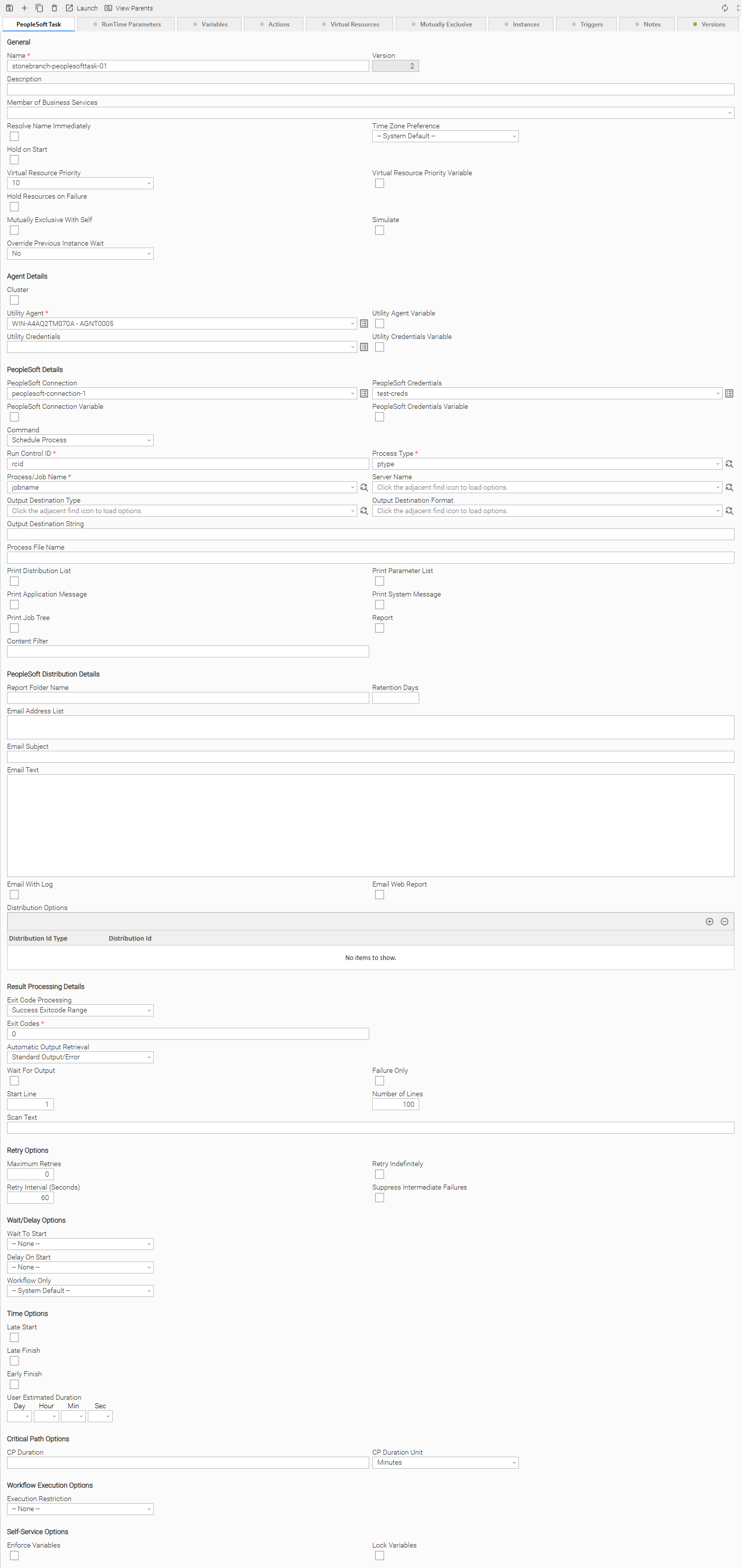 The following PeopleSoft Task Details is for an existing PeopleSoft task.