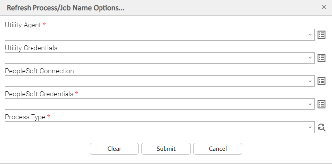 Process Type | If Command = Schedule Process or Schedule Job; Specific type of PeopleSoft process. (If Command = Schedule Job, Process Type defaults to PSJob and is read-only.) |