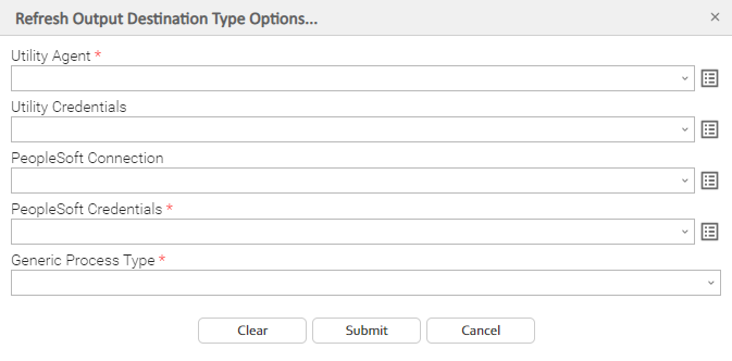 Output Destination Type | If Command = Schedule Process or Schedule Job; Type of output for the submitted process. |