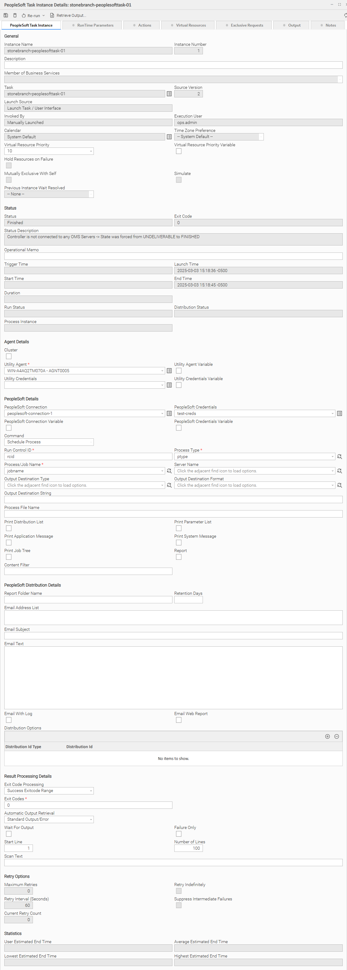 The following PeopleSoft Task Instance Details contains information on the execution of the task shown in the PeopleSoft Task Details.