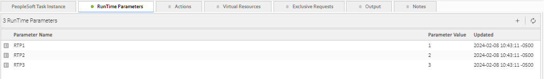 You can add one or more RunTime Parameters for each PeopleSoft task, and define the values for those parameters, as described below.