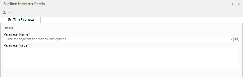 Step 4 | Click the refresh picker icon next to the Parameter Name field to select options for the RunTime Parameter.