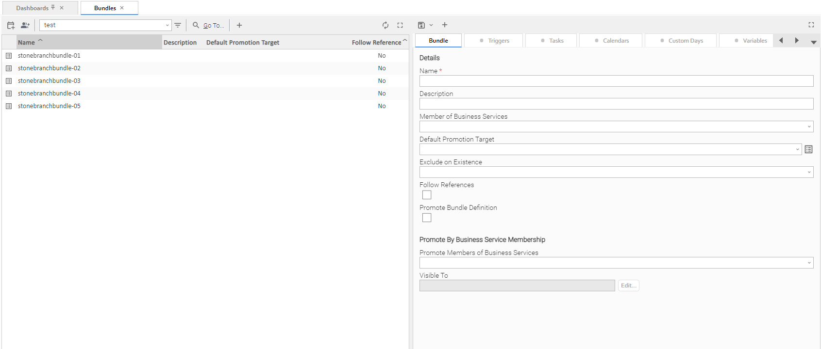 Bundle "Member of Business Services" option requires a minimum promotion target release level of 6600. | Attempt to promote a Bundle that is a member of a Business Service to a target that is not 6.6.0.0. or higher. |