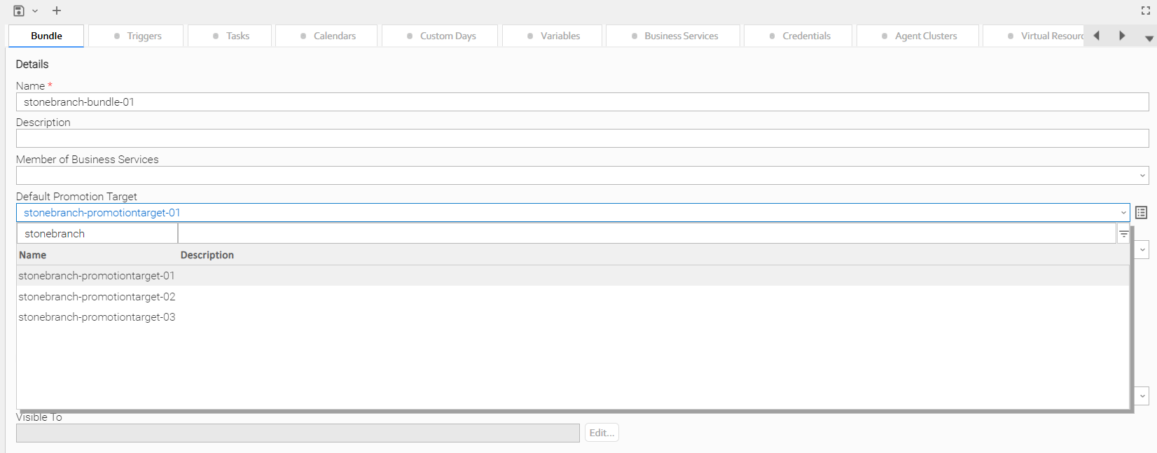 In the following example, the drop-down list for Default Promotion Target lets you filter the list of Promotion Target records by Name or Description field: